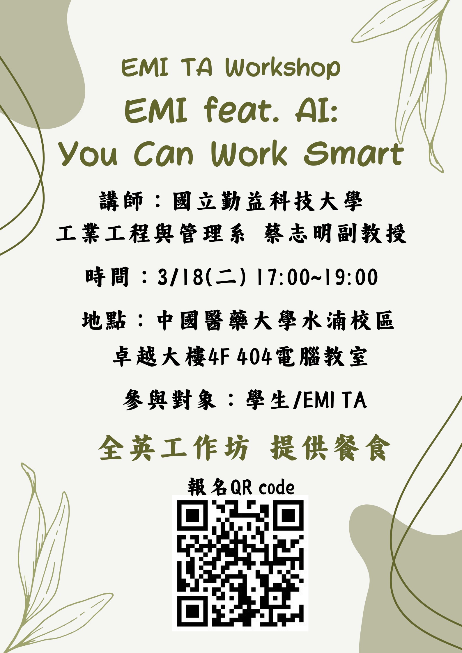 【雙語中心】想成為EMI TA或學習EMI教學技巧嗎?快來參加EMI TA培訓工作坊
