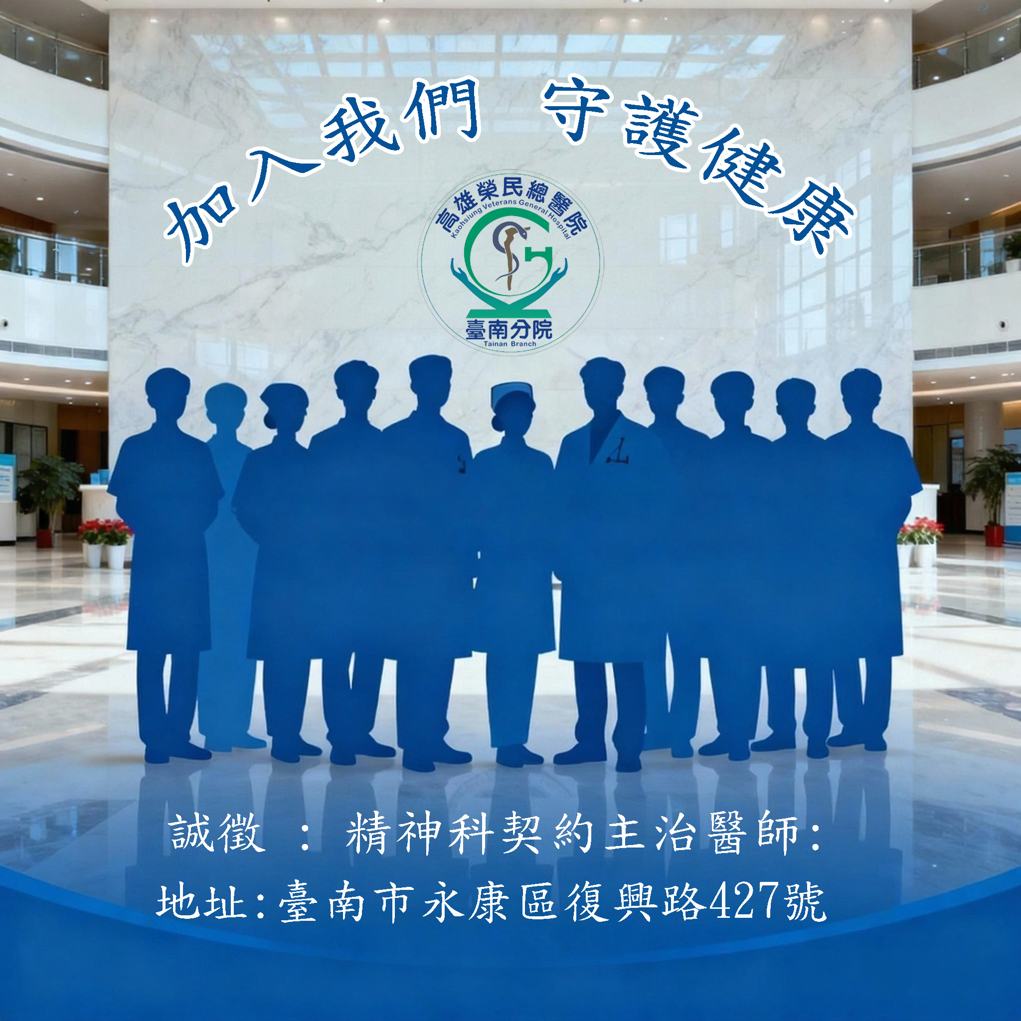 高雄榮民總醫院臺南分院-誠徵 : 精神科契約主治醫師: